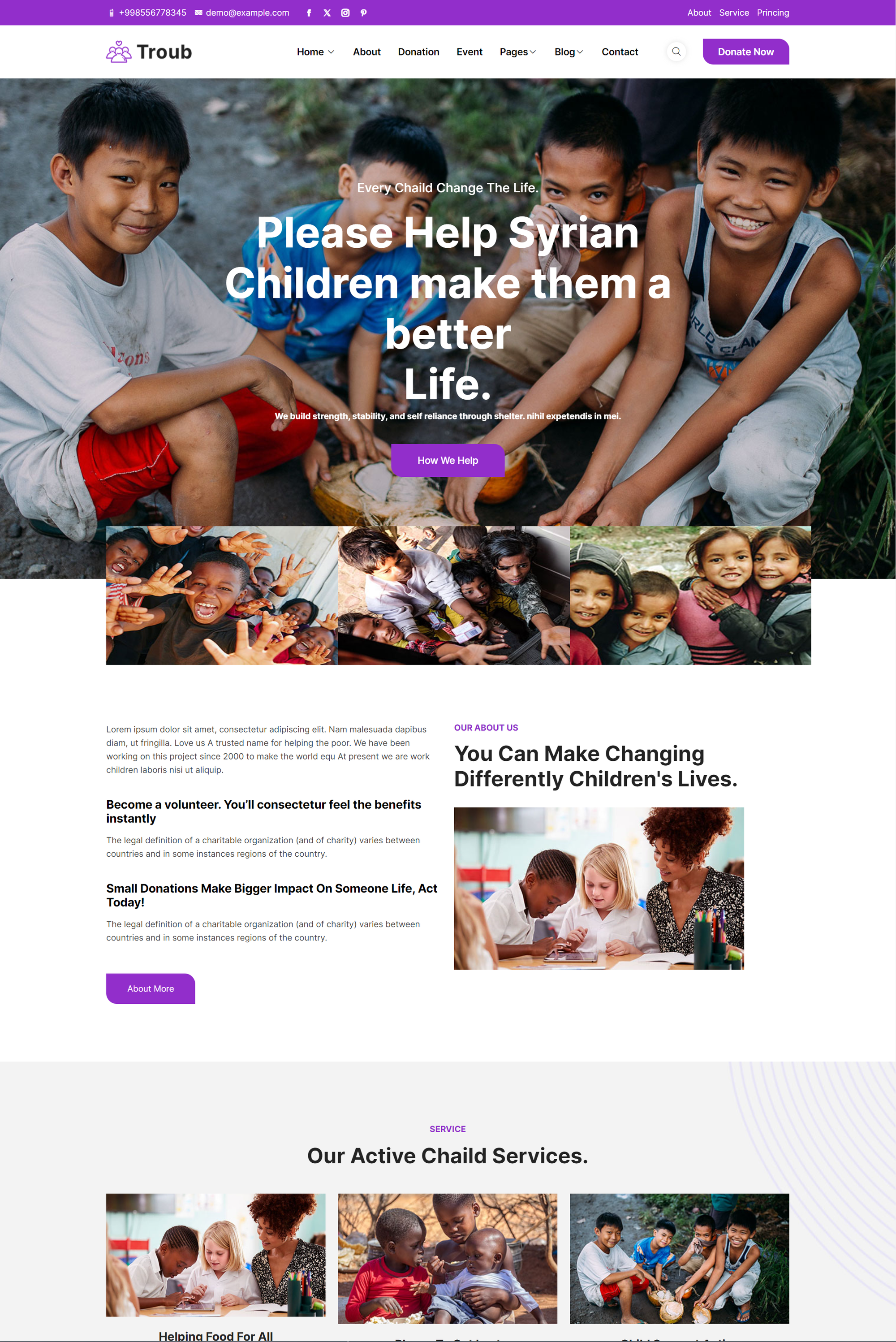 响应式HTML5儿童公益服务网站模板是一款适合从事儿童公益服务网站